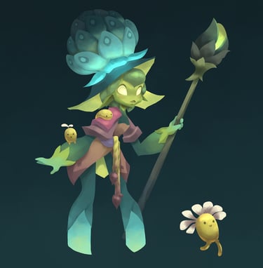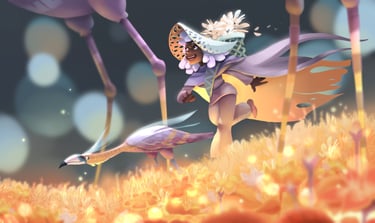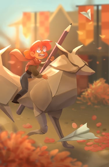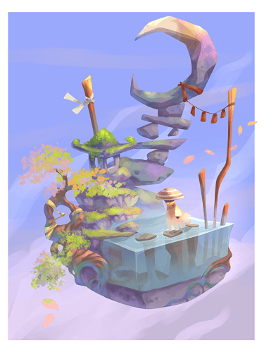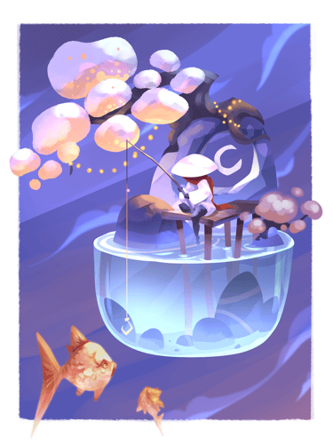 I like to tickle the viewer's curiosity, either by using a unique colour palette, by adding a mysterious character in a odd place, or by creating a place in-between worlds.