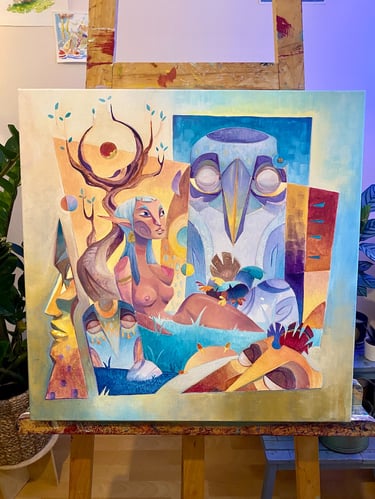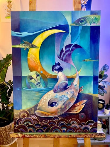 My approach to illustration and painting is first and foremost a narrative one. My art is deeply inspired by my interest for celtic and asian cultures and by my immense love for colour theory.